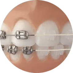 | ![]() | Так выглядят металлические (слева на картинке) и керамические брекеты (справа) |